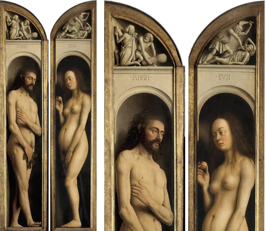 Hubert van Eyck, o irmão mais velho, iniciou a obra, mas morreu antes de vê-la concluída. Coube a Jan — o verdadeiro alquimista da cor — terminar o retábulo, transformando o óleo em veículo de revelação e transcendência.